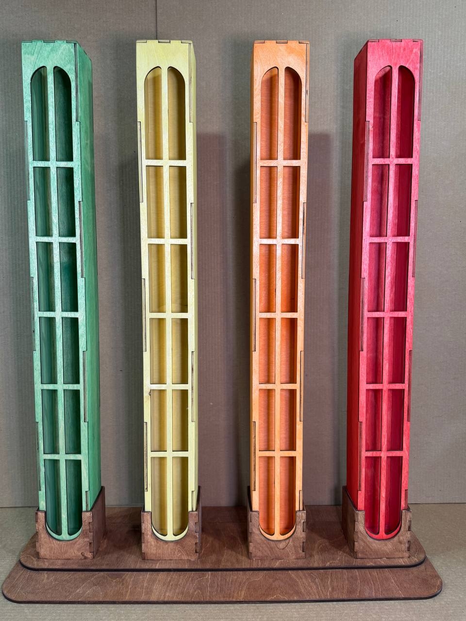 В чем суть? Нужно на скорость собрать шарики своего цвета в трубу. Можно играть не только вчетвером, но и использовать игру как эстафету для четырех команд