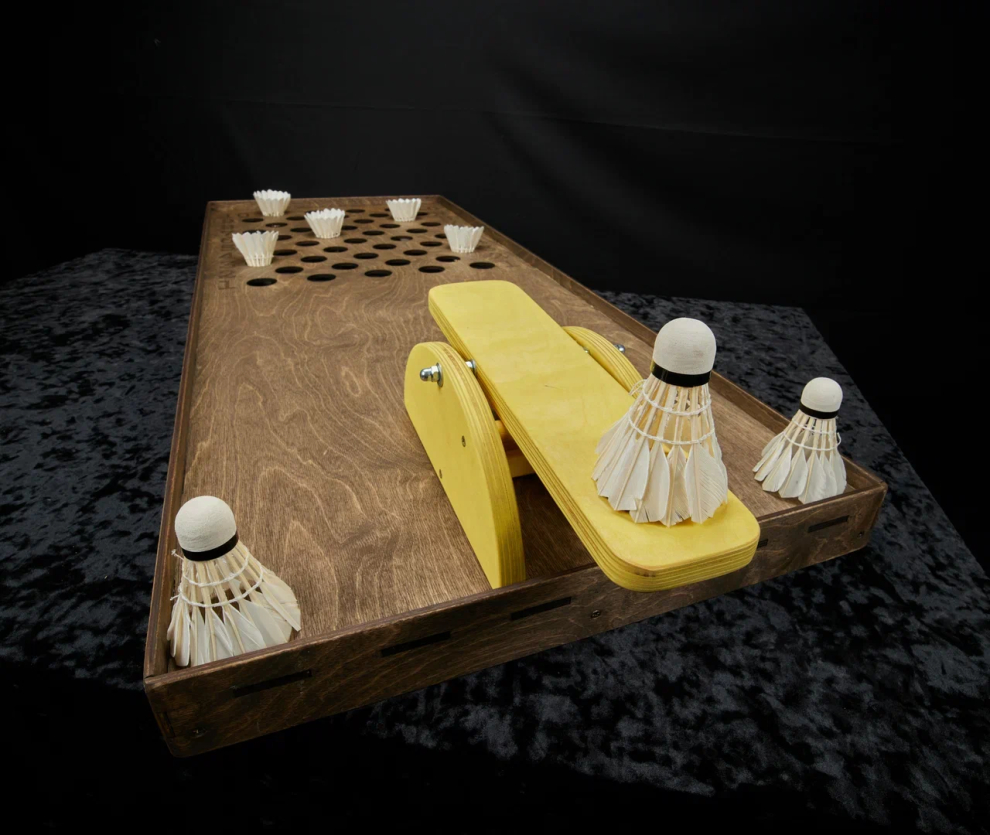 Ударяем рукой по катапульте, наш воланчик устремляется в небесам