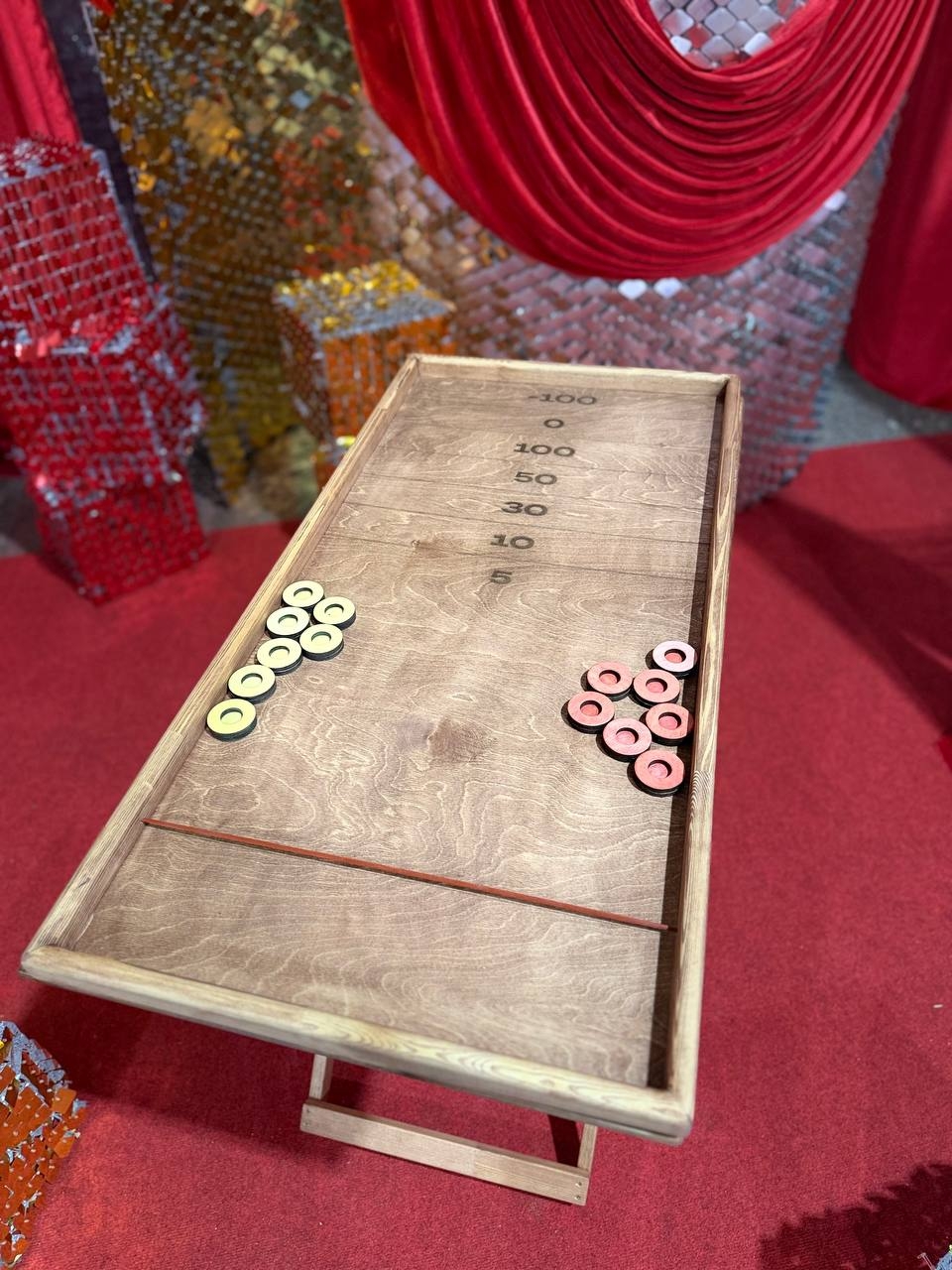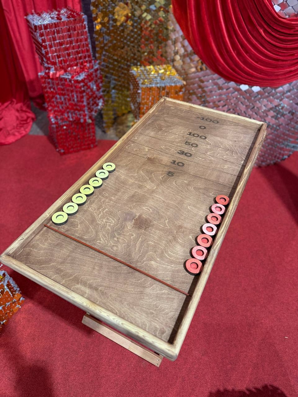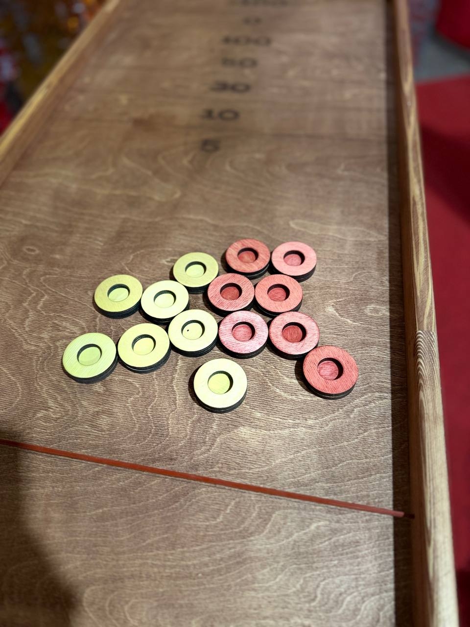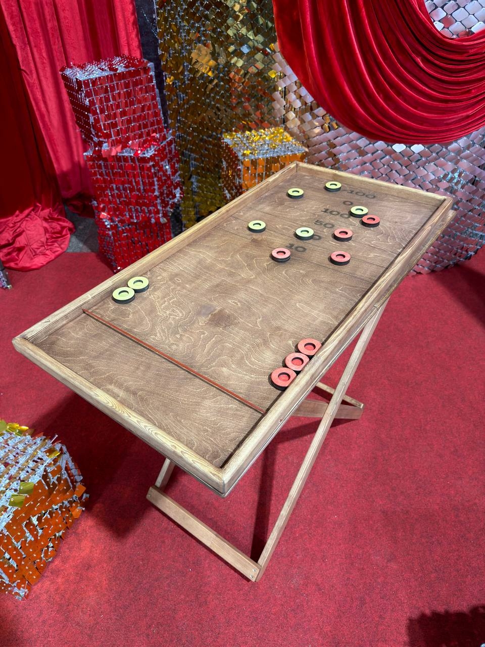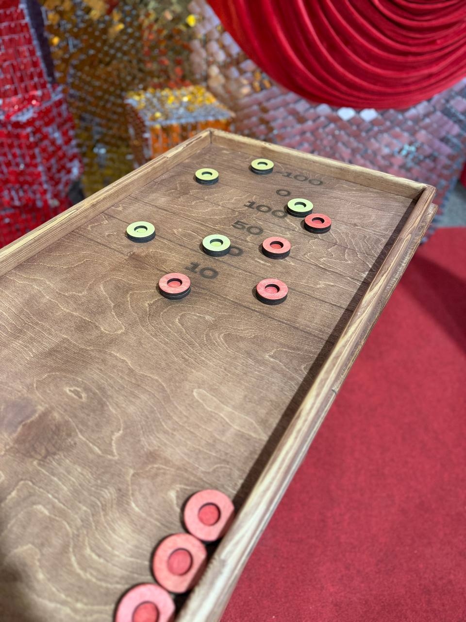 При помощи резинки игроки запускают на поле шайбы (для каждой команды свой цвет), стараясь набрать как можно больше баллов. Можно сбивать шайбы соперников