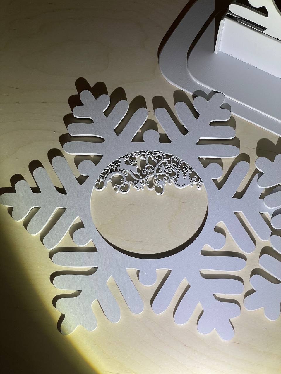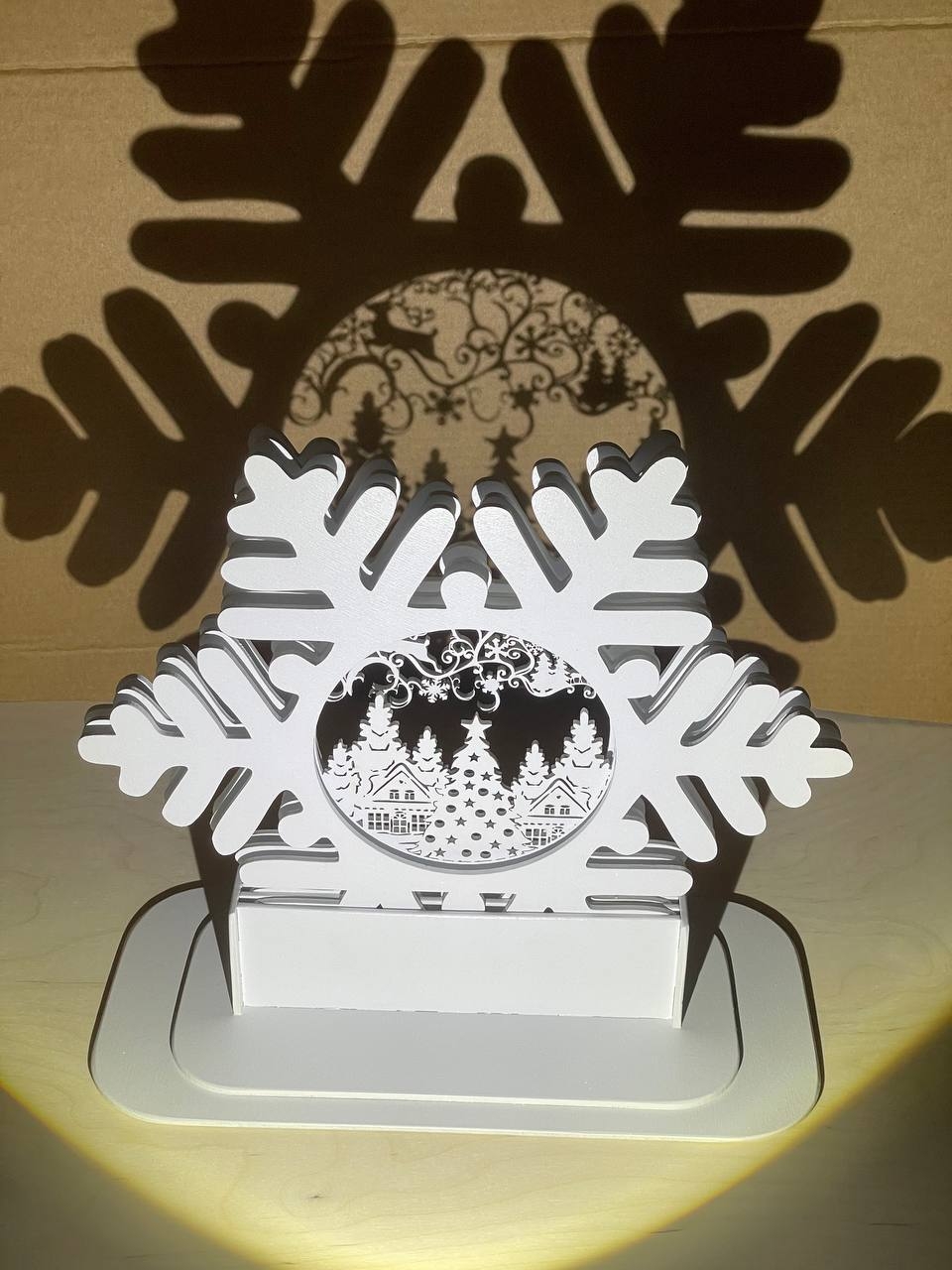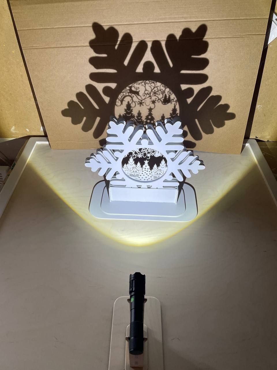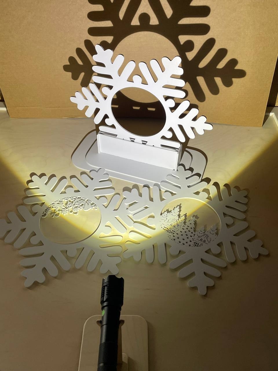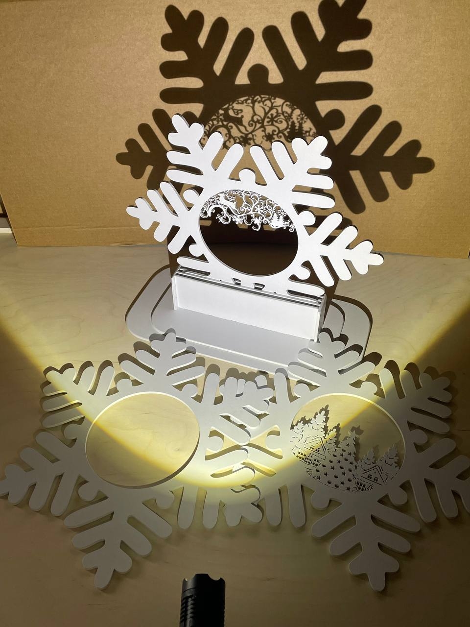 В комплекте три снежинки с разными историями. В комплекте фонарик. Размер снежинки 37:37 см