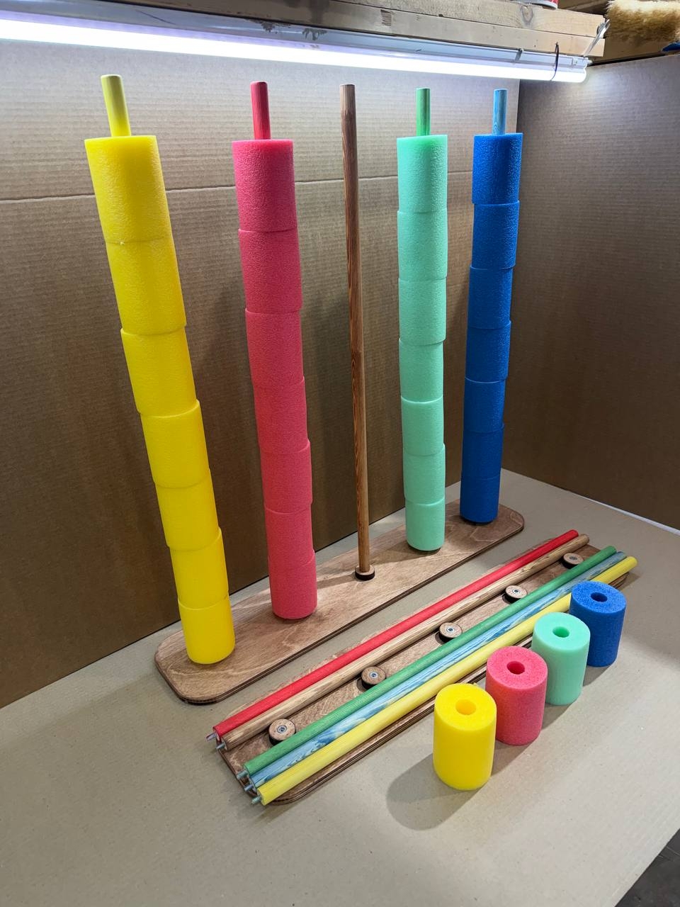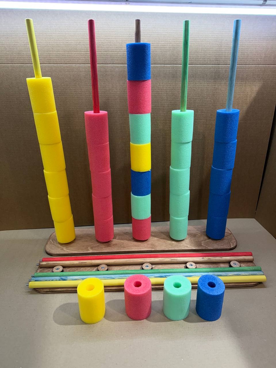 Игрокам предстоит рассортировать бочонки по цветам. Конструкция разборная